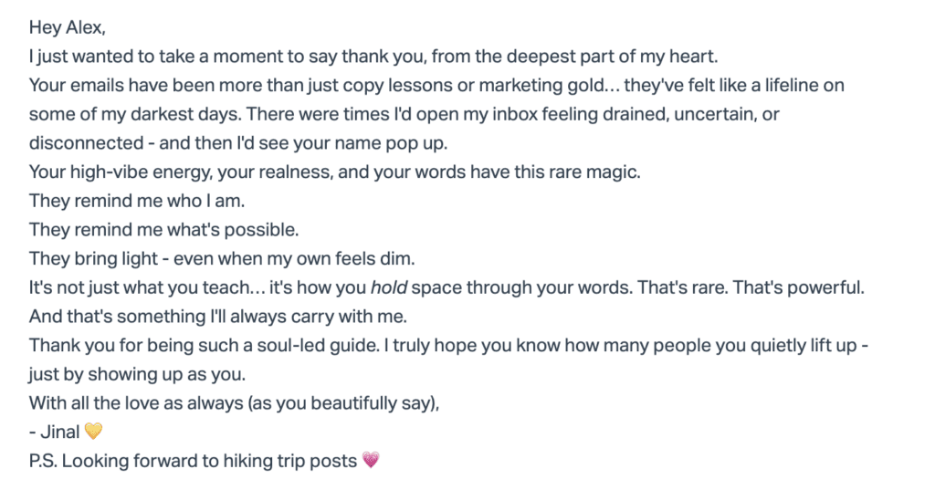 I constantly get messages from people saying my newsletter and emails are their FAVORITE to read and consume.